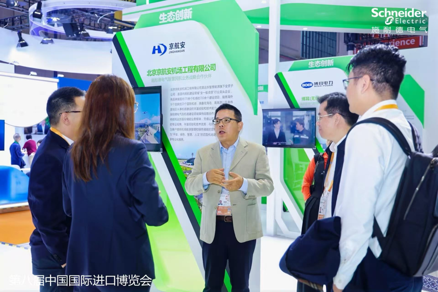 11月5日-10日,第八届中国国际进口博览会在上海举办。施耐德电气连续八年参展,以“创新赋能,万化未来”为主题亮相技术装备展区,全面呈现在数智技术、生态合作和产业应用方面的先进成果及创新实践,为中国产业实现数智化、绿色化的新质转型提供强劲动力。