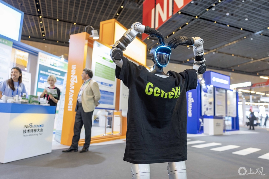 人形机器人在2025浦江创新论坛InnoMatch技术转移大会展区表演。赖鑫琳 摄
